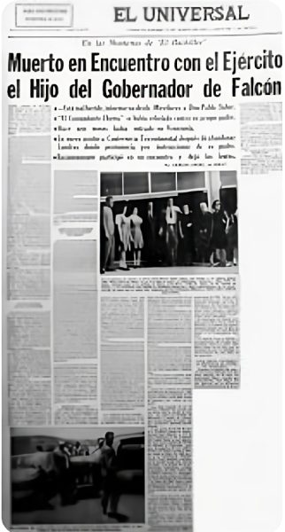 23 de marzo de 1967, El joven revolucionario José Manuel Saher “El Chema” es ejecutado por efectivos del Ejército de entonces en la Montaña de El Bachiller. El Chema Saher era hijo del gobernador del Estado Falcón. (El Padre Gobernador y el hijo guerrillero ).