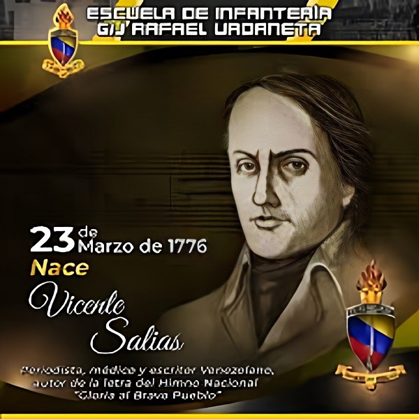 1776: Nace el periodista, médico y escritor venezolano Vicente Salias. Autor de la letra de la canción Gloria al Bravo Pueblo, Himno Nacional de Venezuela.