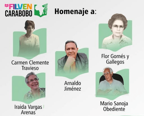 Entre los homenajeados a nivel nacional se encuentran Carmen Clemente Travieso (1900-1983), Mario Sanoja Obediente (1934-2022) e Iraida Vargas Arenas (1942), mientras que por el estado Carabobo los escritores reconocidos son Flor Gornes y Gallegos (1923-2016) y Arnaldo Jiménez (1963).