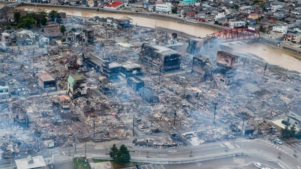 La ciudad costera de Wajima, la más afectada, aún mantiene a más de 40 casos de personas sepultadas y atrapadas bajo los escombros de los edificios derrumbados.