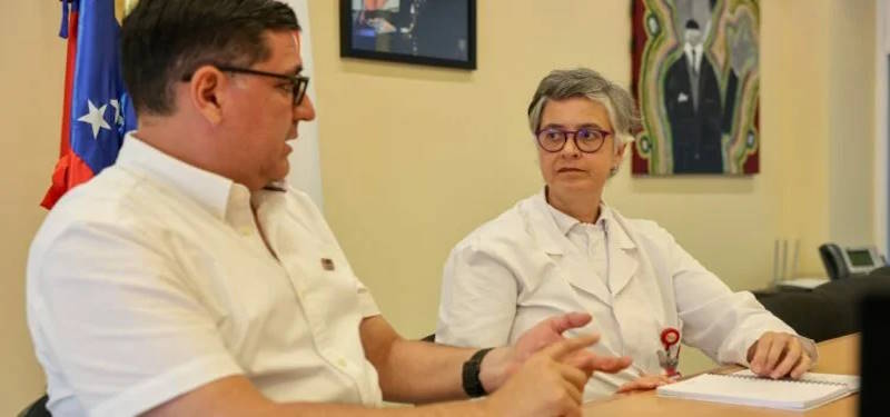 En un encuentro celebrado en las instalaciones del Hospital Cardiológico Infantil Dr. Gilberto Rodríguez Ochoa, la Vicepresidenta Sectorial de Salud, Ecosocialismo, Ciencia y Tecnología, Dra. Isabel Iturria, y el presidente de la Comisión Permanente de Educación, Salud, Ciencia, Tecnología e Innovación de la Asamblea Nacional, diputado Jehyson Guzmán, definieron líneas de trabajo conjunto para potenciar el sistema legislativo de sus áreas comunes de trabajo.