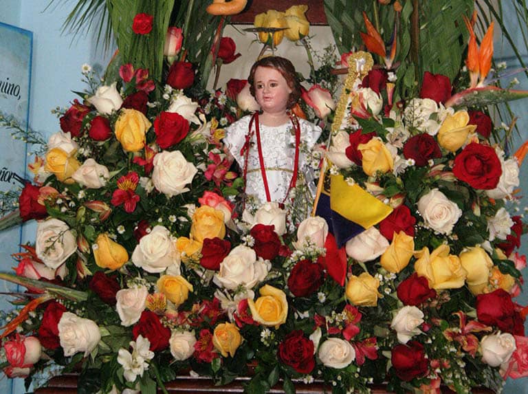 En la penumbra, la tenue luz de las velas baña en místico sortilegio el altar, que profusamente revestido con flores y frutos de la madre tierra, ofrendados a la Cruz de Mayo Bendita, sirve de magnífico escenario para que luzca esplendorosa, destacándose en su vistoso y multicolor atuendo, en el punto más prominente de la composición devocional, en ese agónico instante de su despedida.