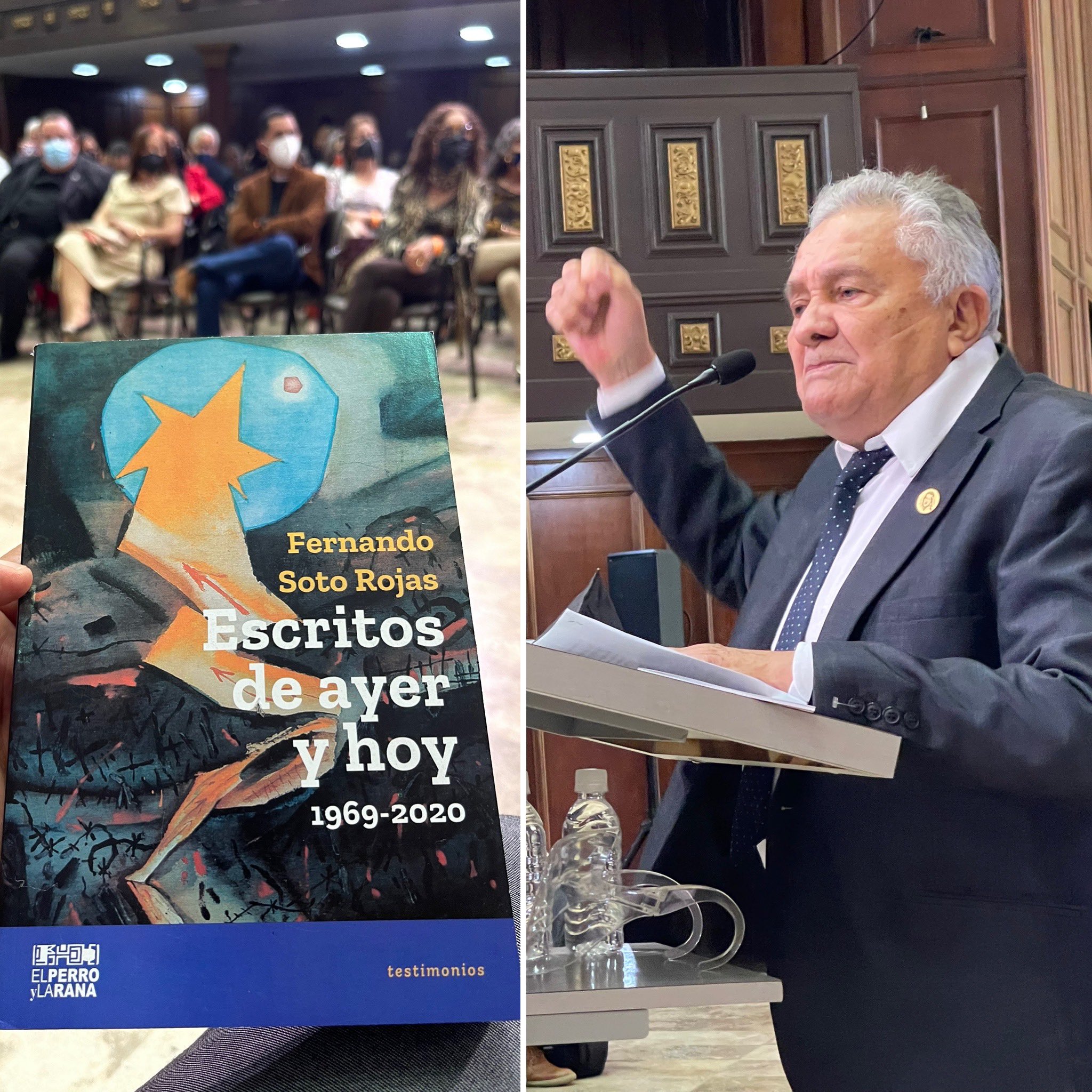 Rodeado de familiares, camaradas y amistades entrañables Fernando Soto Rojas presenta su libro “Escritos de ayer y hoy (1969-2020”, publicado por @elperroylarana e impreso por @ImprentaCultura, en Hemiciclo Protocolar del Palacio Federal Legislativo. #30Jun#FelizLunes pic.twitter.com/ujKSRPikpy— Ernesto Villegas Poljak (@VillegasPoljak) May 30, 2022