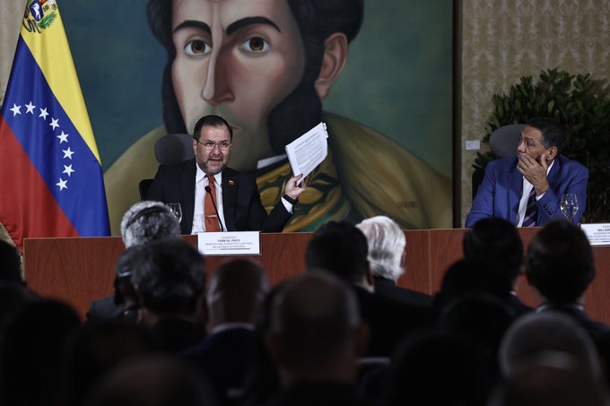 En la Casa Amarilla “Antonio José de Sucre”, en Caracas, se llevó a cabo una reunión con el cuerpo diplomático y demás instituciones internacionales acreditadas en la República Bolivariana de Venezuela, para exponer los resultados del acuerdo firmado entre el Gobierno Bolivariano y la Plataforma Unitaria en Barbados.