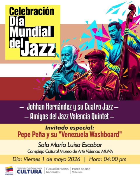 - Cocuy Concert: Celebración por el Día Mundial del Jazz. Johhan Hernández y su Cuatro Jazz – Amigos del Jazz Valencia Quintet – Invitado especial: Pepe Peña y su «Venezuela Washboard» – 4 p.m. – Sala María Luisa Escobar del MUVA