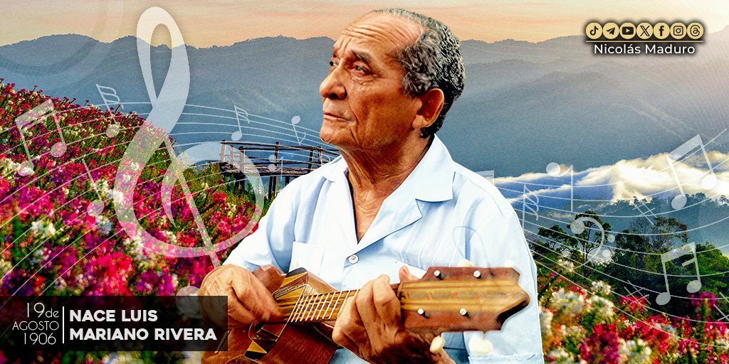 Celebramos el 117° Aniversario del nacimiento de Luis Mariano Rivera, el creador de “Canchunchú Florido”, quien se esforzó por mantener viva la identidad venezolana a través de la música, su obra es una extraordinaria contribución a nuestro patrimonio cultural. pic.twitter.com/HDvgSqTut5