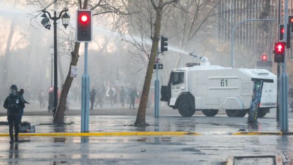 Uno de los contingentes de manifestantes pretendió llegar a la sede del conservador partido Renovación Nacional (RN), cuya dirigencia se opone a la convocatoria de una asamblea constituyente.