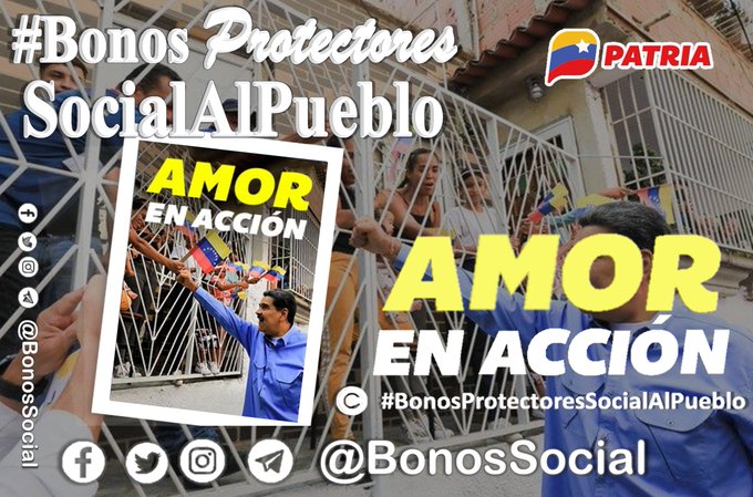 Las redes sociales del sistema Patria difundieron la información de que ha comenzado a asignarse, como parte de las gestiones emprendidas por el Ejecutivo nacional para proteger al pueblo venezolano, el bono Amor en acción. El mismo es enviado por el presidente Nicolás Maduro a través de esta plataforma.