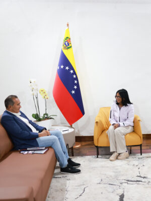 La presidenta encargada de la República Bolivariana de Venezuela, Delcy Rodríguez, sostuvo una reunión de trabajo con el Gobernador del estado Cojedes, Alberto Galíndez, con el objetivo de revisar y dar seguimiento a los planes de infraestructura, vialidad agrícola y optimización de servicios públicos en la entidad llanera.