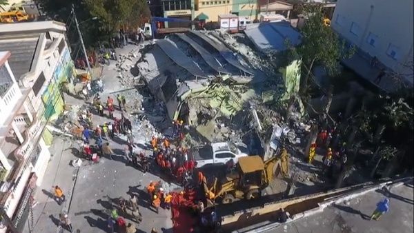 «Nuestro personal continúa las labores de rescate de algunas personas que continúan atrapadas, tras el derrumbe de un edificio en La Vega», expresa la última actualización publicada en el Twitter de la Defensa Civil.