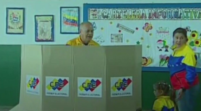 «Venezuela está votando en paz, en tranquilidad, a pesar de la lluvia», expresó Cabello. “Hemos pasado por varios centros de votación en Maturín y en todos hay colas, hay movimiento de gente votando”.