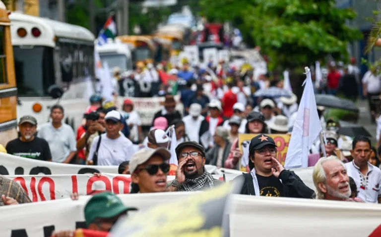La movilización en la capital salvadoreña, encabezada por el Bloque de Resistencia y Rebeldía y el Movimiento de Víctimas del Régimen (Movir), concluyó en la histórica Plaza Gerardo Barrios, donde se alzaron consignas contra lo que los manifestantes califican como una deriva autoritaria del gobierno de Nayib Bukele.