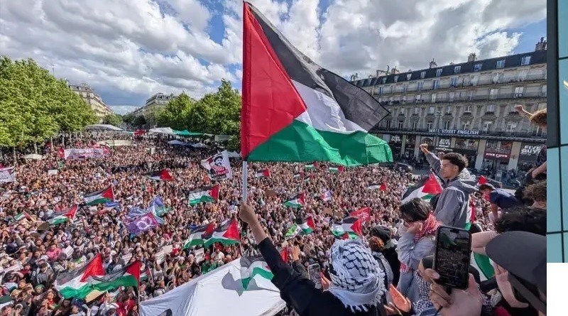En tanto, las organizaciones defensoras de la causa palestina en París, Francia, se juntaron en la plaza de la Bolsa, y exigieron un embargo de armas para Israel así como el acceso sin trabas a los convoyes de asistencia humanitaria que esperan en las fronteras de la Franja de Gaza.