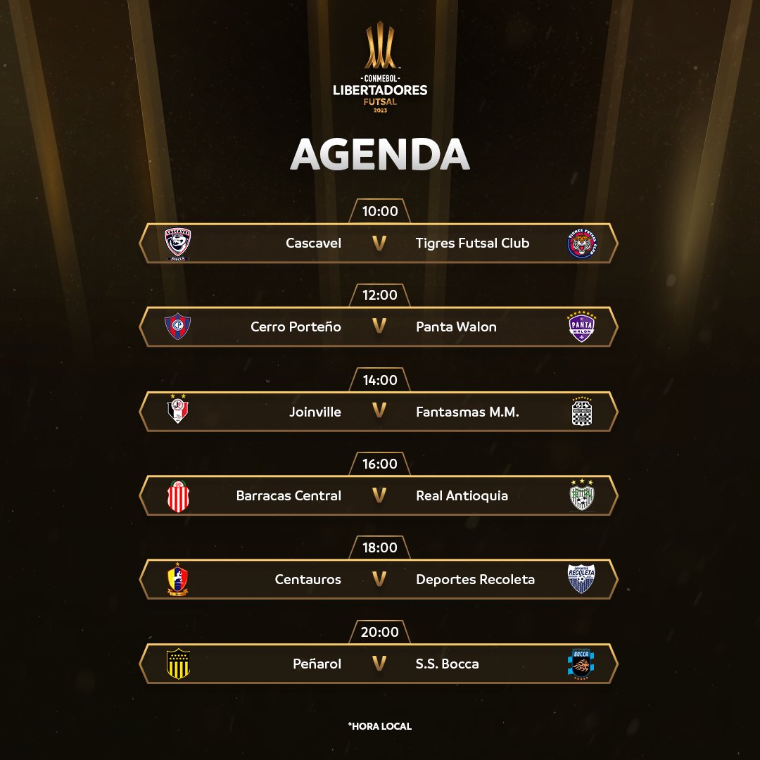 🔜🏆 ¡Ya empieza! Estos son los partidos del primer día de la CONMEBOL #LibertadoresFS. ¿Te los vas a perder?