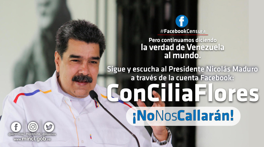 La transnacional Facebook no quiere dar respuesta a las comunicaciones y solicitudes hechas por el Ejecutivo Nacional, tras la censura al presidente de la República, Nicolás Maduro Moros, en su plataforma.