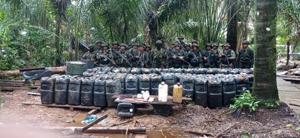 En operaciones soberanas de reconocimiento y patrullaje en Mcpio. José Antonio Páez del Edo. Apure, URRA Miranda de la #FANB logró la localización y desmantelamiento de un depósito TANCOL dentro de un bosque de galería, con 10 mil lts de acetona y 50 kg de material explosivo. pic.twitter.com/Qm1laBM53b