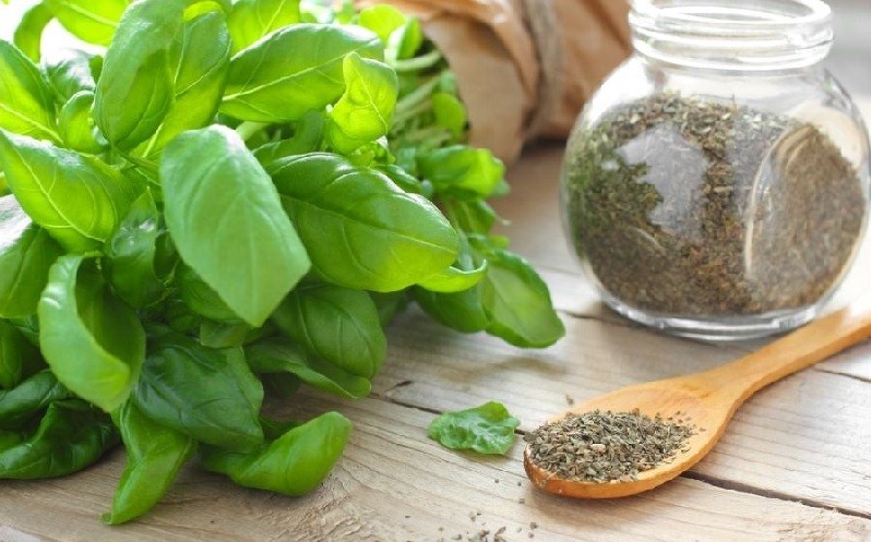 La albahaca seca puede ser un excelente complemento para una amplia variedad de vegetales, incluidos los calabacines y las berenjenas. Se puede utilizar para sazonar aves y pescados tanto secos como frescos. Cuando use albahaca seca, es mejor agregarla en la última media hora de cocción.