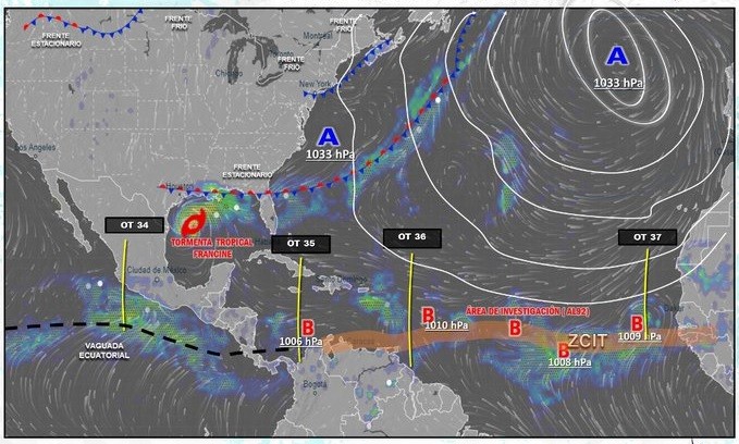 El oleaje es estimado en 1 metro de altura en los litorales Central, Oriental, en la Zona Insular y en 1,5 metros de altura en el litoral Occidental.