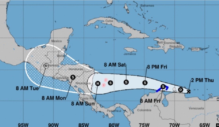El Centro Nacional de Huracanes inicia los avisos sobre el Posible Ciclón Tropical TRECE ubicado en el Caribe venezolano. Es decir, tenemos a la Onda Tropical 41 (AL91) con alta posibilidad de convertirse en Depresión Tropical. Los pronósticos de lluvias se mantienen #6oct 11 am. pic.twitter.com/jT2uSRajEu