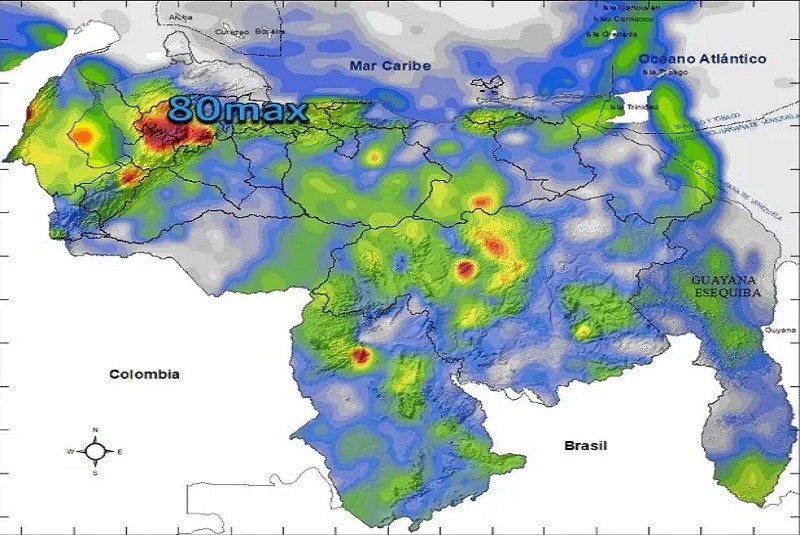 Igualmente el Instituto Nacional de Meteorología e Hidrología (Inameh) acotó que las lluvias vendrán acompañadas de descargas eléctricas y eventuales ráfagas de viento, más acentuadas en zonas de la Guayana Esequiba, Bolívar, Amazonas, sur de Anzoátegui, Guárico, Lara, Táchira y sur del Zulia.