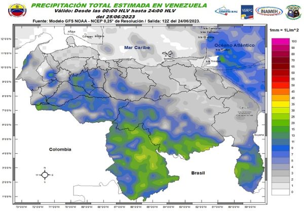 El reporte detalla que prevalece muy activa la Zona de Convergencia Intertropical, lo que propicia la formación de nubosidad con lluvias, algunas acompañadas de actividad eléctrica y eventuales ráfagas de vientos, en áreas del Zulia, Mérida, Táchira, Llanos Occidentales y Centrales, Amazonas, Bolívar y el Esequibo.