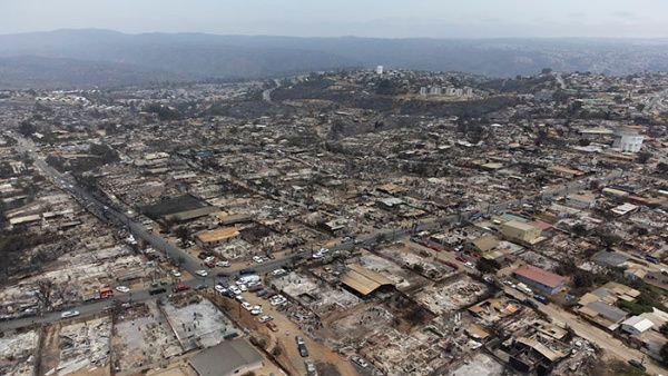 Según la proyección del Gobierno chileno, más de 12.100 viviendas han sido afectadas por los incendios solo en la ciudad de Viña del Mar, mientras que en Quilpué, otro de los epicentros del fuego, serían 2.700.