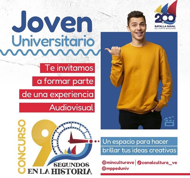 El Ministerio del Poder Popular para la Cultura anunció la apertura del concurso 90 segundos en la historia, para jóvenes universitarios en ocasión del Bicentenario de la Batalla Naval del Lago de Maracaibo.