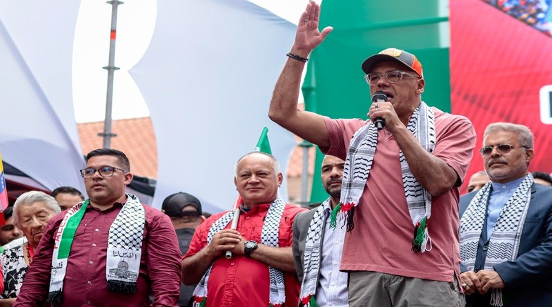 “El dilema es de la humanidad entera, que se divide entre la gente decente, como somos las venezolanas y los venezolanos que alza la voz contra el homicida criminal de guerra de Benjamín Netanyahu y aquellos que lo justifican y aquellos que se hacen la vista gorda, aquellos hipócritas que no se conduelen con el asesinato de niñas, niños, médicos, de gente decente y buena”, expresó el presidente del Poder Legislativo venezolano, quien agradeció la presencia en la actividad popular, de los embajadores del Estado de Palestina y de la República Islámica de Irán.