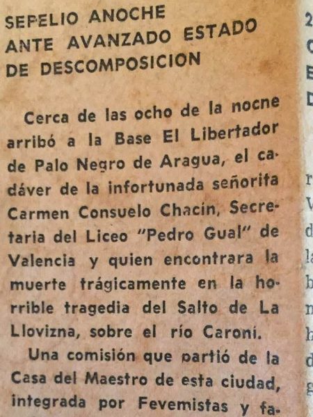 Importante decir que, durante la investigación de este nuevo capitulo, se recibió el mensaje de una fiel colaborada para la producción de Vestigios del Pasado, ella es María Consuelo Chacín (Mariconchi, del programa 2xSemana), quien facilitó excelentes detalles para conocer un poco más sobre esta historia y de su tía que falleció en aquella tragedia .