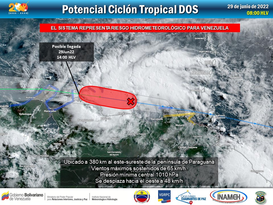 Sin embargo, llamó a tomar medidas de prevención en protección de la población, ya que se prevé que el sistema llegue a los estados Falcón y Zulia. Para el momento de sus declaraciones, el ciclón se encontraba al norte del archipiélago Los Roques, de acuerdo con Pereira.