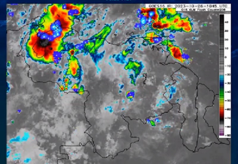 Estos fenómenos atmosféricos se evidencian en Delta Amacuro, Anzoátegui, Nueva Esparta, Bolívar, Amazonas, oeste de Apure y sobre el Lago de Maracaibo.