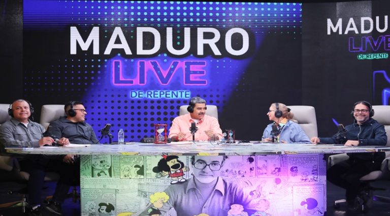 Desde la nueva emisión del programa Maduro Live De Repente, el jefe de Estado ratificó que el espacio de esta jornada será muy especial, “porque vamos a estar conectados con las comunidades, vamos a hacer un De Repente noticioso, pero también de acción de resultados de gobierno, porque hoy es día de Bricomiles, y ya van a dos años cabalgando toda esta batalla victoriosa de nuestro pueblo construyendo su felicidad y construyendo su seguridad”.