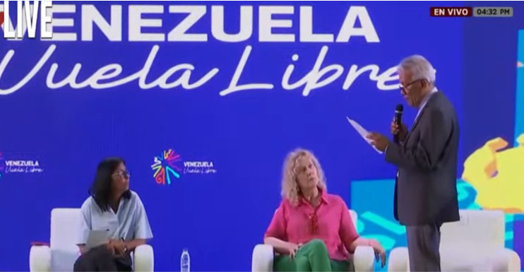 La manadataria Encargada de Venezuela, Delcy Rodríguez, lidera este jueves 23 de abril un encuentro con integrantes de la sociedad civil en el Teatro Juárez del estado Lara.