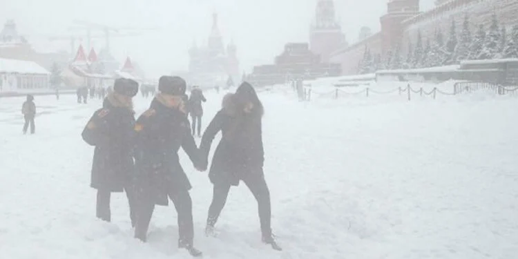 Las autoridades meteorológicas de Rusia elevaron a nivel naranja el estado de alerta climático para Moscú tras el empeoramiento de las condiciones atmosféricas, debido a las fuertes nevadas y rachas de viento huracanadas que han vuelto a teñir de blanco la metrópoli.