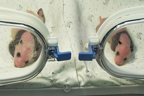 En una base de reproducción en la provincia de Shaanxi, ubicada al noroeste de China, nacen pandas gigantes gemelos de una madre criada artificialmente, un macho y una hembra.