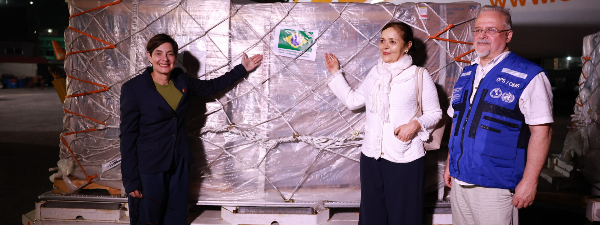 En la recepción del material estuvieron acompañando a la ministra Gabriela Jiménez: Armando De Negri, representante de la Organización Panamericana de la Salud (OPS) y Gláubia Maria de Almeida Oliveira, embajadora de Brasil en Venezuela.