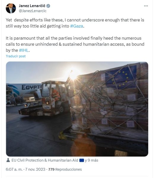 No obstante, Lenarcic resaltó que la ayuda resulta insuficiente mientras apuntó que desde el pasado 7 de octubre han entrado por el paso de Rafá 500 camiones, lo que representa la misma cantidad que antes entraba a diario.