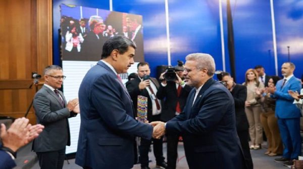 Desde el Salón Ayacucho del Palacio de Miraflores, el presidente constitucional de la República Bolivariana de Venezuela, Nicolás Maduro, otorga el Premio Nacional de Periodismo Simón Bolívar 2025, a los profesionales, comunicadores sociales, alternativos y populares de la nación.