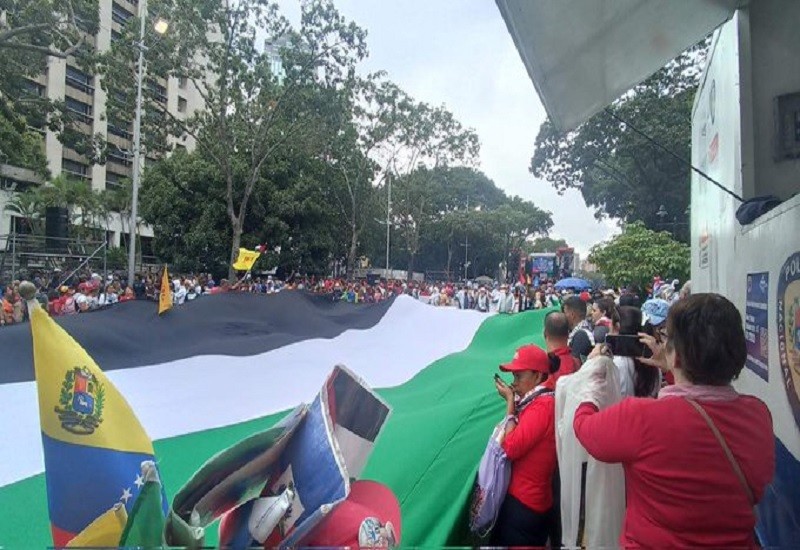 De manera masiva el pueblo venezolano tomó las calles en una respuesta positiva a la convocatoria de la Gran Marcha Nacional en Apoyo al Pueblo de Palestina, que se realiza este jueves en Caracas.
