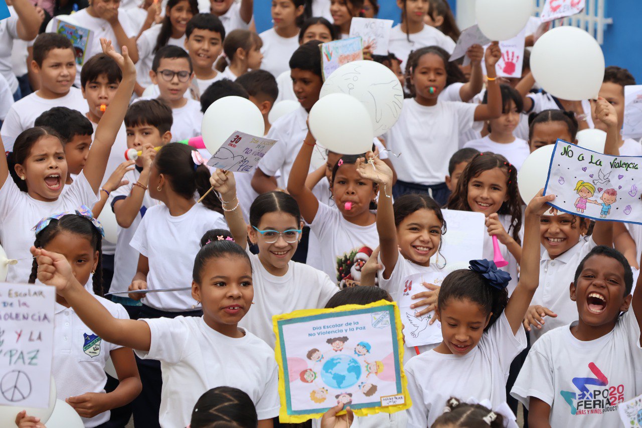 El evento, que recorrió las calles adyacentes a la institución, tuvo como objetivo promover los valores de tolerancia, respeto y solidaridad entre los niños y niñas, quienes portaron pancartas y globos blancos como símbolo de su deseo por un entorno escolar armonioso.