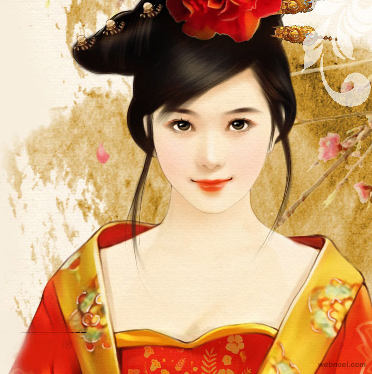 Cuando cesó de llover salió con la vieja; y, en cuanto estuvieron fuera ya de los linderos de Shan-tung, compraron alfileres para el tocado y vestidos femeninos. El disfraz fue perfecto y cualquiera hubiese jurado que Moral-en-Flor era una mujer de veras. Cambió su primer nombre por el de Niang, “niña”, a pesar de que, por espacio de unos cuantos días, se sintió tan turbado que no se atrevió a hablar.