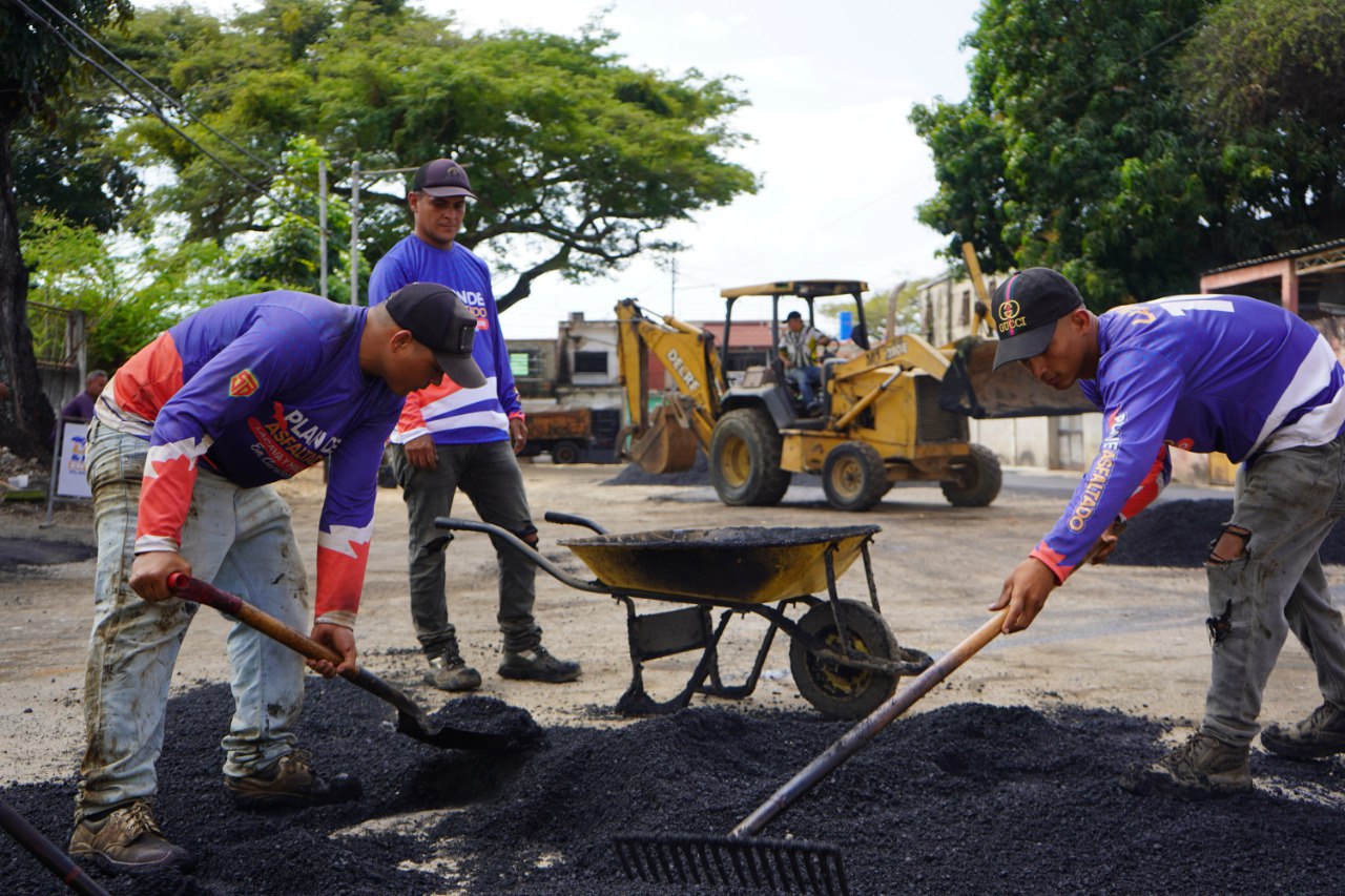 Como parte del impulso del Plan Integral de Servicios Públicos, desplegado por la Alcaldía de Valencia, a través de Instituto Autónomo Municipal de Vialidad, IAMVIAL, continúa los trabajos de bacheo y nivelación de la carpeta asfáltica en la Urbanización El Palotal, parroquia Santa Rosa del municipio.