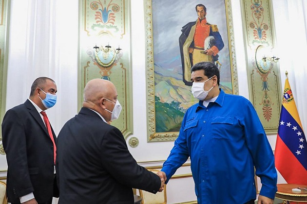 El mandatario venezolano señaló en un mensaje publicado en su cuenta de la red social de Twitter que recibió, en el Palacio de Miraflores, “la grata visita” del viceprimer ministro de Cuba, Jorge Luis Tapia Fonseca, del ministro de Agricultura, Ydael Jesús Pérez Brito, y del embajador en Caracas, Dagoberto Rodríguez.