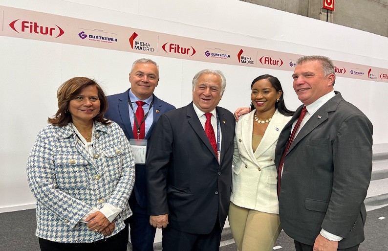 “Participamos en el saludo inaugural @fitur_madrid 2023, junto al Rey de España, el Presidente de Guatemala, país socio de la Feria para esta edición, y los ministros y altas autoridades de turismo”, precisó el ministro en el mensaje publicado.