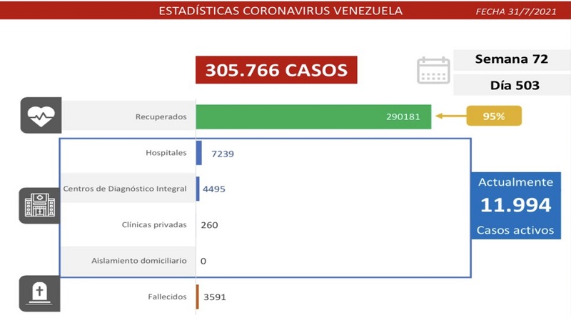 Desde marzo de 2020 hasta la presente fecha, estas son las estadísticas generales del coronavirus en Venezuela: