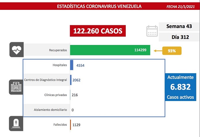 Mientras que la tasa de recuperados se ubica en 93 por ciento del total de casos, al sumar 114 mil 299 sanaciones gracias a los tratamientos gratuitos que garantiza el Gobierno Bolivariano.