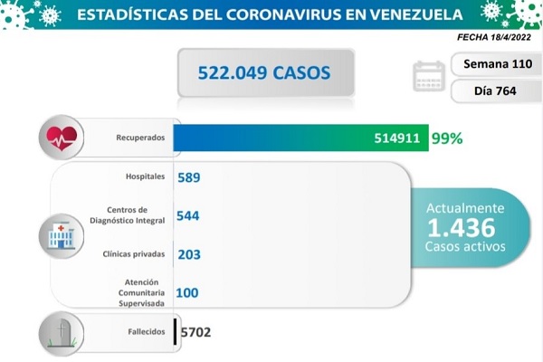 De los casos totales – explicó el también ministro de Comunicación e Información -, 1.436 personas aún se encuentran transitando la enfermedad, mientras que los casos recuperados ya llega a 514.911 personas, lo que equivale el 99% de los contagiados totales.