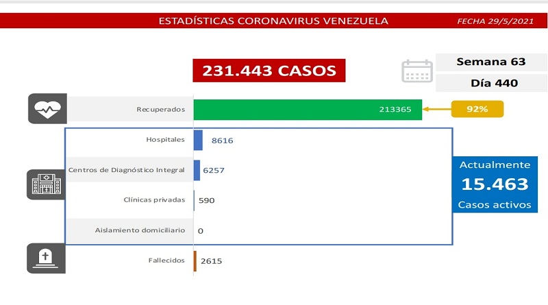 Igualmente, informa que a 440 días de pandemia en Venezuela, estas son las estadísticas generales: