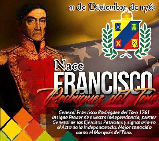 1761: Nace en Caracas Francisco Rodríguez del Toro. Prócer republicano, firmante del acta de la independencia, conocido simplemente como el Marqués del Toro.