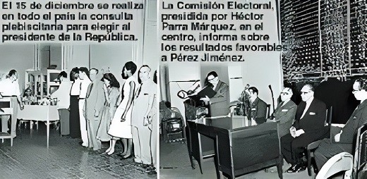 1957: El general Marcos Pérez Jiménez, realiza y gana un plebiscito para extender su mandato por cinco años . El plebiscito fue considerado por la oposición como ilegal y violatorio de la Constitución de 1953.